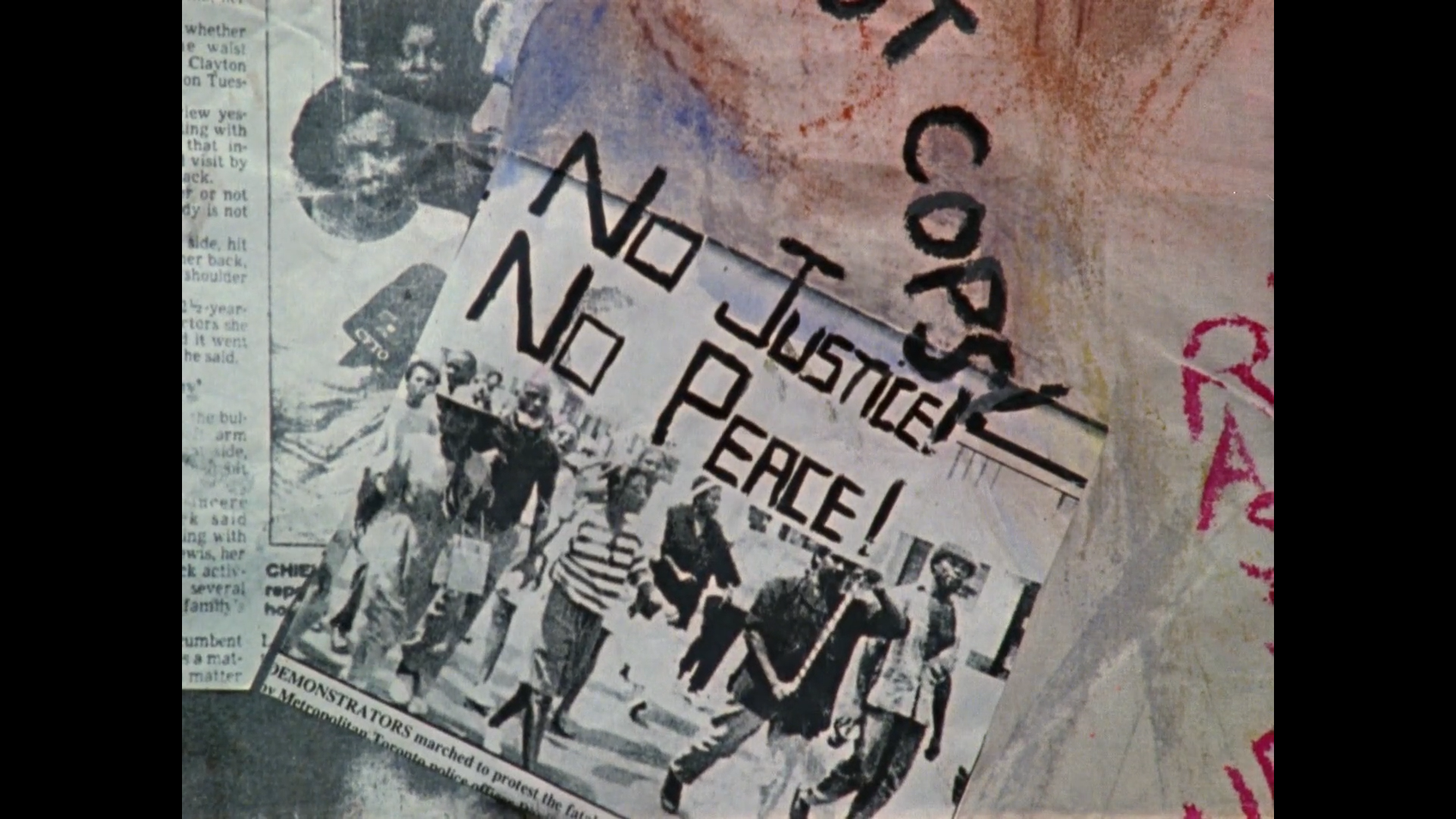 In the same way that Sisters in the Struggle traces institutionalized racism through memory, embodied experiences, and everyday encounters, I commune with them in this struggle. These narratives of resistance are played out through my embodied experiences now, throughout the film, as well as how the film is effaced through narratives of multiculturalism. A narrative, within a narrative, within a narrative.As a film genre, documentary has the potential to urge political action and collective resistance as a medium. What value or purpose does it serve when a documentary film is appropriated by or assimilated into the Canadian political and economic agenda? Or more specifically, what role does the documentary film play when The National Film Board of Canada (NFB), as a government-funded appendage (that archives, produces, and funds English-Canadian and Quebecois films in Canada), is implicated in this structure through its continual exclusion of black and Indigenous bodies while appropriating their voices into the imaginary narrative of multiculturalism and diverse inclusivity? As a national cinema recognized for its documentary-esque or realist aesthetic or style of filmmaking, the critique produced through the film on Canada’s performative multiculturalism is reenacted through its assimilation into the institutional body.