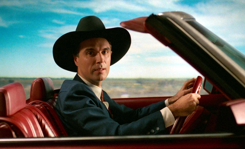 David Byrne’s directorial debut, True Stories (1987), is a piece of media that ponders similar questions. The film tells the story of the fictional town of Virgil, Texas, as its inhabitants prepare the yearly parade and talent show for the “Celebration of Specialness,” which commemorates the town’s 150th anniversary. True Stories does not necessarily present one strict linear plot, but instead it follows David Byrne’s character, a nameless narrator dressed as a modern-day cowboy who is first seen cruising down the highways of the Lone Star state in his red convertible, as he often breaks the fourth wall to guide the audience through this not-so-sleepy Texan town, introducing its many characters and places.