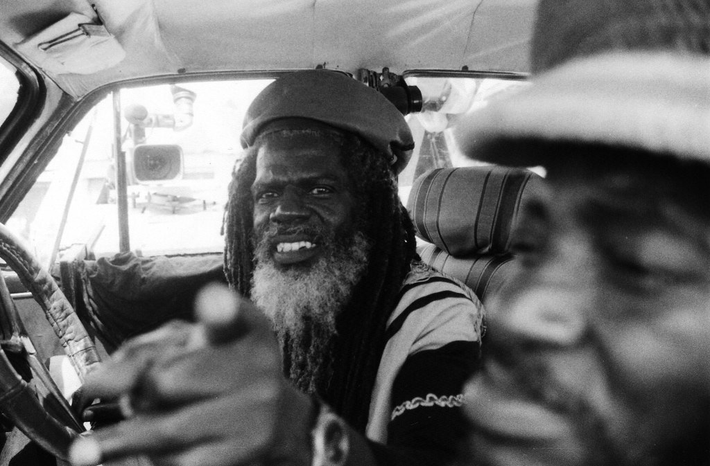 In the opening scenes of the film, Farmer Roots, who is only known by voice thus far, imparts the teachings and histories of Rastafarianism to the people, tuning in from wherever they can in the Jamaican countryside. As a slice of life film, the camera captures the day to day lives of Jamaicans—fishing, farming, and playing music—while the Rootsman car busies various small town streets. Jah Bull and Baboo broadcast Farmer Roots’ radio station to the people with a speaker system attached atop their colourfully decorated buggy, which they use as a vehicle for circulating the Rastafarian faith selling LP’s from village to village. Along their regular selling route making stops and deliveries, they bicker and preach, broadcasting their every passing thought, whim, and story that comes to mind. From the unenthused looks of passersby and disappointed customers, this appears to unfortunately be routine for everyone. From one fruitless encounter to the other, Jah Bull and Baboo carry on unbothered, sending out irie vibes straight “Out of Babylon,” where Farmer Roots announces the special guest artists invited on the radio to perform live jam sessions for Haile Selassie Day. Entirely broadcasting reggae on the air, the program acts as a conduit for Rastafarian rituals and creeds, similar to what gospel or worship music is to Christianity, but emphasizes the necessity of political critique and protest in its content.
