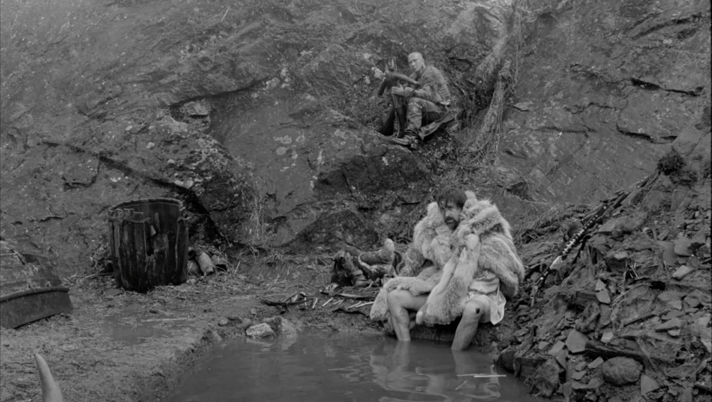 There is another aspect to the character of Anton that reveals his humane side, as an ordinary person who has compassion and a moral compass, and to which I am going to refer as Don Rumata. Throughout the scarce dialogue in the film, one thing cannot evade the viewer—Don Rumata’s humorous attitude. Among the sea of people who are both mentally and physically scarred, Don Rumata appears the most normal due to his adequate speech and put-together appearance. He builds around himself the world within Arkanar, a world of close comrades, such as Baron Pampa, young servant boy Uno, and most importantly, his local lover Ari. Despite his close relationships with these people, Don Rumata does not reveal his real identity in an attempt to protect his constructed world. He has created a new reality within the Arkanar, one that has allowed him to maintain his humanity and morality through a certain degree of assimilation. His honor as a human being is revealed as soon as these people are gradually and cruelly taken away from him.