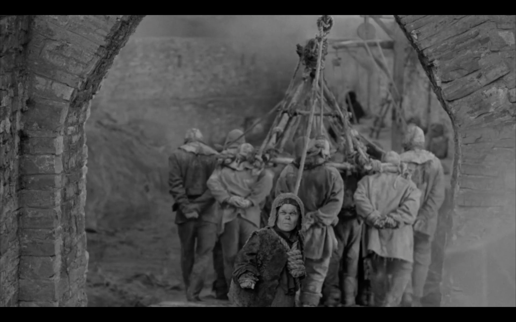 Firstly, Baron Pampa, who the protagonist saves from a torture chamber, and whose body is represented in a degrading way, lying naked and face deep in the dirt. Secondly, the servant Uno; a boy who is constantly looking into the camera, attracting the viewer’s attention, and is shot with an arrow. And finally, the breaking point of Don Rumata, the death of Ari in the hands of the protagonist, which triggers the final massacre. While the event itself is not revealed to the viewer, the camera carefully moves through the aftermath of the battle, presenting Rumata in a catatonic state. The protagonist’s desire to execute his revenge comes from his long-suppressed human honor and moral values. And while he is temporarily successful in hiding behind the scientific mission, the alter-ego of Don Rumata reveals the effects of the Arkanar environment and his fall from grace into violence.The main irony behind Hard to be a God is that Anton himself a subject for a study, an unknown participant in the new version of the Stanford prison experiment. While he unconsciously and blindly follows the directives, he is also observed and controlled by the scientists from Earth (who are quick to arrive as soon as he loses his anthropological lens). He is a tool at the hands of the Academic corporation, and as soon as his human honor reveals itself, he needs to be taken away for re-programming. The honor of the scientist that Anton believes in therefore proves useless, as it is directed and controlled by the head office. And while the honor of the human being and desire for justice prove to be an essential part of every person, it ultimately leads to tragic consequences and Anton’s descent into madness. Perhaps this is the message both German and the Strugatsky Brothers wanted to convey—as long as you are able to preserve your personal honor, you remain a human being in a world of violence and bureaucracy.