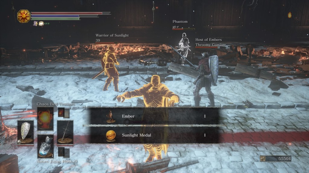 The difference here is that the space being given this imbued sense of humanity and reverence isn’t a real-world space, but a space pulled from another game. To someone who has never played the original Dark Souls, this site may mean nothing at all and is just a point of transition to the remaining two thirds of the Ringed City. But the inclusion of the original Firelink Shrine here, contextualized through the Dreg Heap’s powerful convergence of geographical and historical spaces, gives pause to players familiar with their prior experience in the world of Lordran and reminds them of the quasi-ordinary space that used to mean so much to them. Even though its original function and meaning has long since been eroded by time, this silent moment of communication between the game and the player conveys that these sanctuaries—and in effect all the bonfires found throughout Dark Souls III—are their own site of reprieve for the weary. That despite their larger ephemerality, they remain a place to rest and guard yourself from this world of utter horror, a space to convene with your friends and meet strangers intent on helping you through a particularly difficult area, or to defeat an intimidating boss. A place to ask for and provide help. A place to exercise your sense of honour.