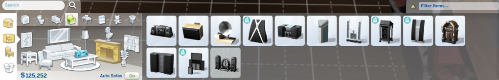 The sims radio has always been an amusing feature of the game, and not just for the sims. The radio often presents real songs from real musicians re-created with “Simlish” (a made-up language the sims speak).While immersed in the video game, a recognizable song may start playing, entertaining both you and your sim. This aspect from the creators of the game helps generate a humorous parallel between our world and theirs. If the interior/exterior of a building is not already decorated with a sound system, the player may purchase one from the “build-mode”.